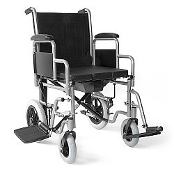 Αναπηρικό αµαξίδιο µεταφοράς πτυσσόµενο, µε δοχείο WC και προσθαφαιρούµενο κάλυµµα οπής. Αφαιρούµενα πλαϊνά και υποπόδια. Φέρει ζώνη ασφαλείας. Η επένδυση του καθίσµατος είναι αδιάβροχη.