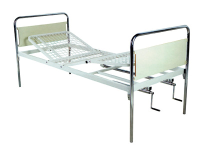 Νοσοκομειακή κλίνη πολύσπαστη / τροχήλατη AC – 401W Ατσάλινος σκελετός Σομιέ με πλέγμα Μετώπες χρωμίου με αποσπώμενες λευκές φορμάικες Με δύο μανιβέλες για τη ρύθμιση της ανύψωσης της πλάτης και των κάτω άκρων (ταυτόχρονα ή μεμονωμένα) Φέρει τροχούς με φρένα για την εύκολη μετακίνηση της στο χώρο Μέγιστο βάρος χρήστη 135 Kg Διαστάσεις κλίνης: 90 (Π) x 200 (Μ) x 50 (Υ) cm
